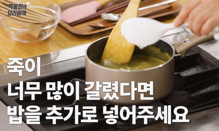 만약 생각했던 것보다 죽이 너무 많이 갈렸다면 밥을 추가로 넣어주셔도 되요.
