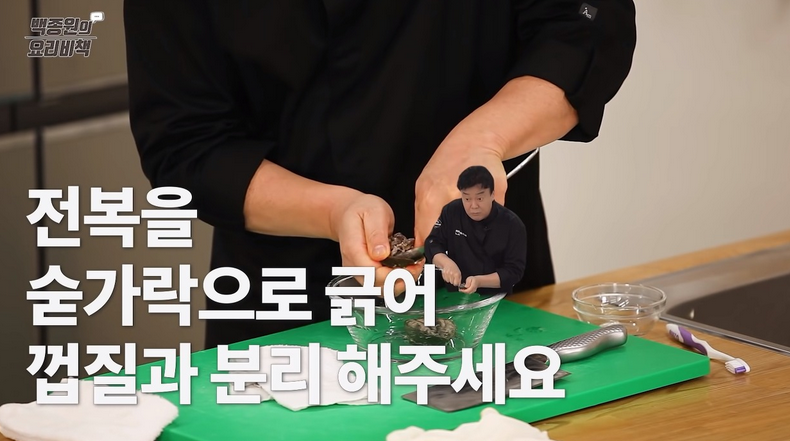 전복죽 황금레시피 가장 첫 단계는 메인 재료인 전복을 손질하는 거예요.